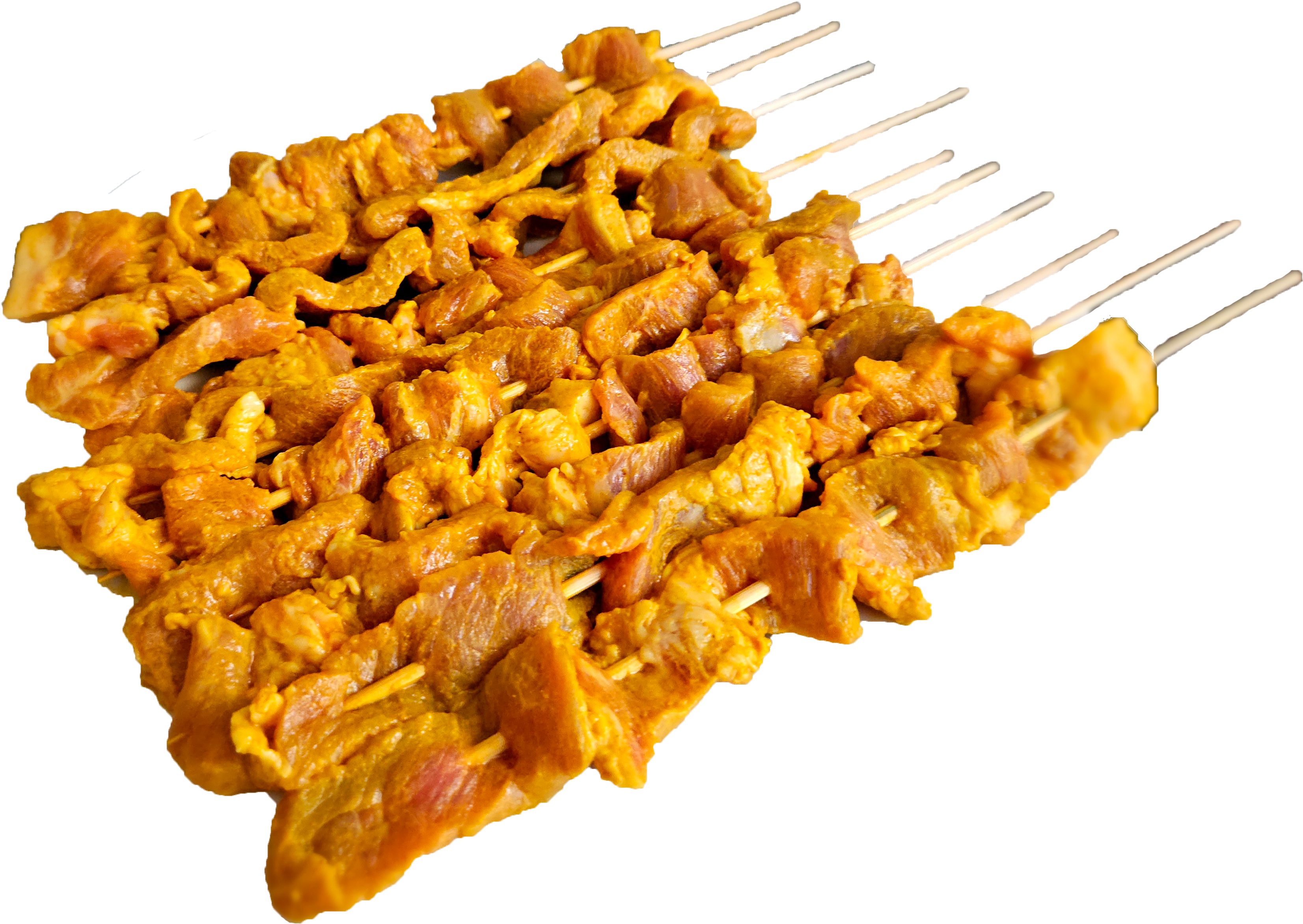Schweinefleisch Satay-Spiesse (ungebraten), dazu eine leicht scharfe Erdnusssauce - zum Frisch-Zubereiten zu Hause