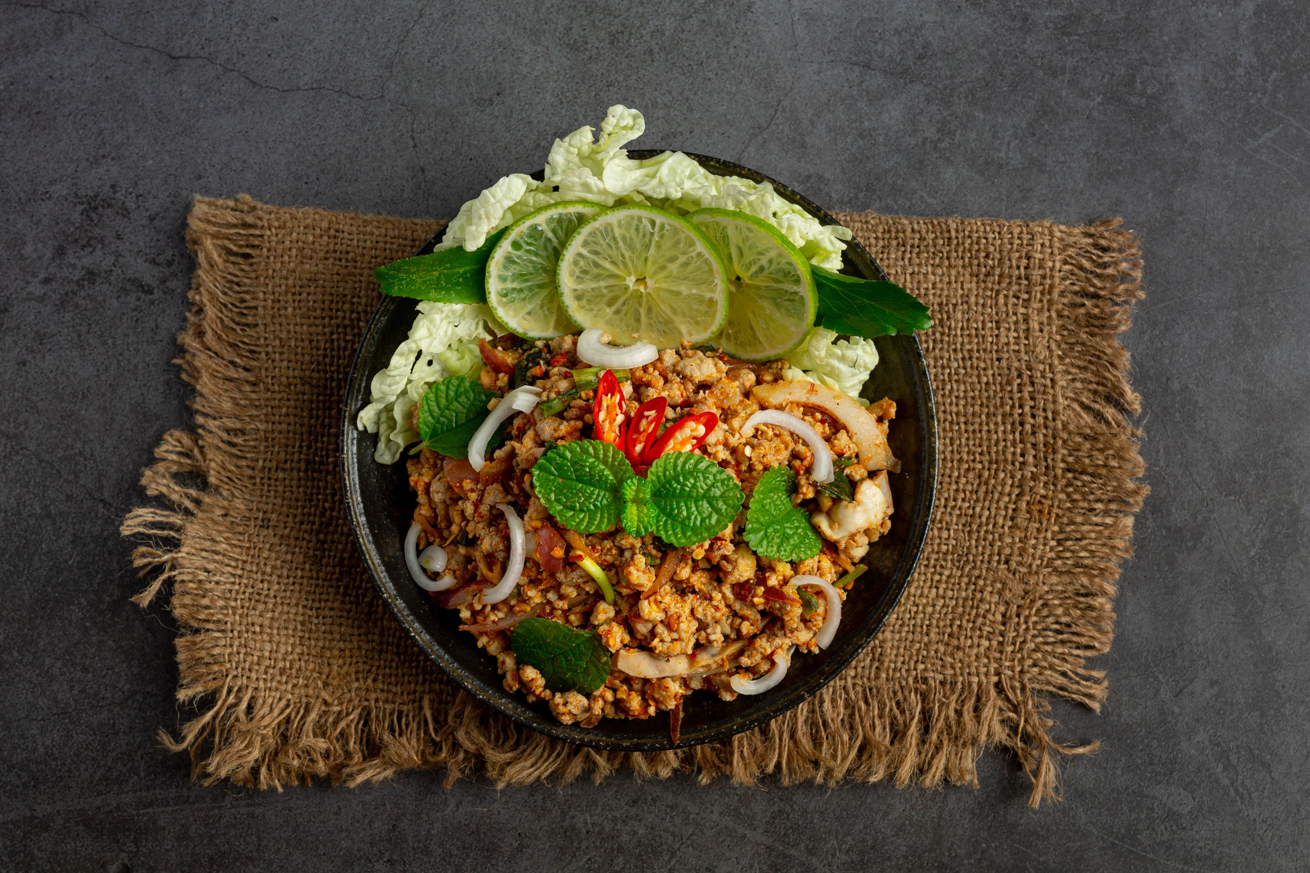 Exotische Aromen: Lassen Sie sich von unserem legendären Som Tam oder dem würzigen Laab begeistern – eine perfekte Balance aus Limette, Chili und frischen Kräutern.